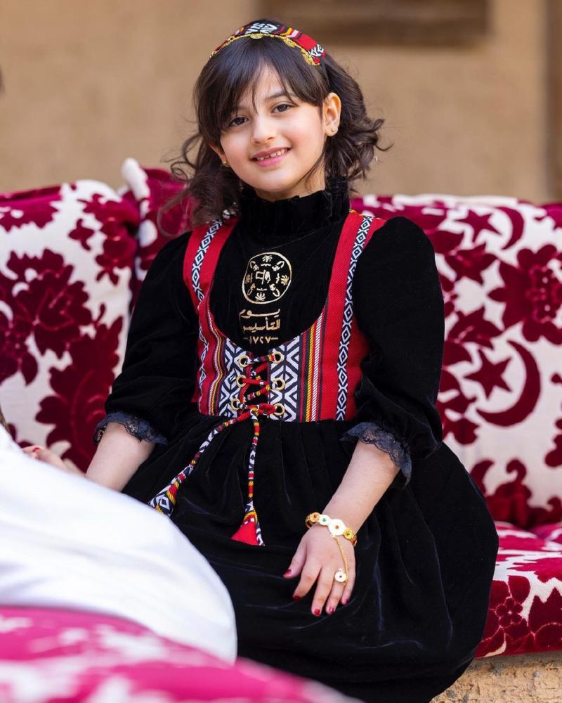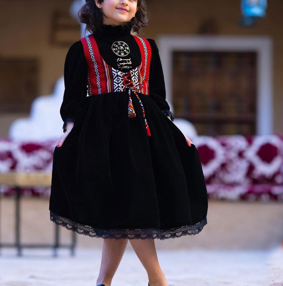 نفخر في متجر ترف أن نقدم لك فستان ليوم التاسيس مخمل فاخر، الذي يأتي بتصميم مبتكر يحتضن الألوان الأنيقة حيث يمتزج اللون الأسود المخمل مع الوان السدو التراثيه ليظهر بأبــها صورة ليمنح طفلك إطلالة متجددة وجذابة تتلاءم مع احتفالات يوم التاسيس ، مما يجعل هذا الفستان لا غنى عنه لكل أميره صغيره .حيث تم اختيار قماش المخمل ليتلائم مع اجواء الطقس بيوم التاسيس